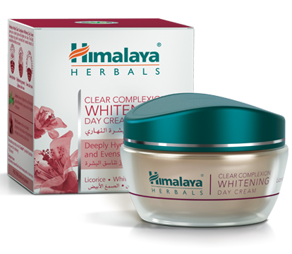 Lightens skin tone. Provides UV protection. What it does: Himalaya’s Clear Complexion Whitening Day Cream gives a radiant glow and brighter skin tone. Our day cream is light and non-greasy, enriched with unique herbal extracts and CINNABLOC™ to provide three effective actions: Hydrates skin Lightens skin tone Clears complexion The breakthrough herbal sunblock CINNABLOC™ provides UV protection and prevents skin darkening. Key ingredients: Licorice is known to help lighten skin and fade dark spots and blemishes, to give your skin a brighter complexion by inhibiting melanin synthesis. White Dammer is a rich source of flavonoids and phenols which exhibit potent antioxidant activity. It helps reduce mild pigmentation and spots, resulting in an even skin tone. Directions for use: Apply Clear Complexion Whitening Day Cream gently over face and neck twice daily, after cleansing. For best results, use regularly. Clear Complexion Whitening Day Cream is dermatologically tested, non-comedogenic, free of mineral oils and parabens, and hypoallergenic. Pack Size: 50g.