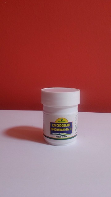 Kacchooraadi choornam is an Ayurvedic medicine used to apply externally to relieve headache, burning sensation, dizziness. It helps to relieve burning sensation, headache, dizziness, eye diseases, cough with sputum. Very beneficial in confusion of mind, giddiness. Also gives good sleep.