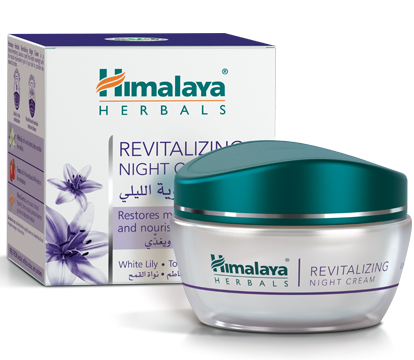 Restores moisture balance, and nourishes and repairs What it does: Himalaya Herbals Revitalizing Night Cream is a deep- penetrating, luxurious cream that works overnight with the skin's natural renewal cycle. The cream provides three essential benefits that make skin soft, supple and rejuvenated: Renews skin cells Hydrates skin Repairs daily damage Key ingredients: White Lily is rich in antioxidants which help to neutralize free radicals and repair daily damage. Tomato fruit is rich in flavonoids and AHAs (Alpha Hydroxy Acids) that help in cell renewal. Directions for use: Massage Revitalizing Night Cream gently over cleansed face at night before retiring. For best results, use regularly. Revitalizing Night Cream is dermatologically tested, non-comedogenic, free of mineral oils and parabens, and hypoallergenic. Pack size: 50g.