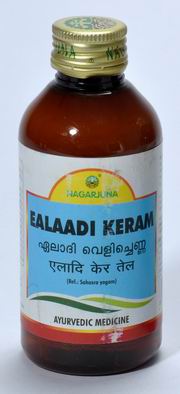Eladi Thailam is an Ayurvedic hair oil used for skin conditions. This oil is formulated based on the Kerala Ayurveda principles. This oil is prepared with sesame oil base. But some companies do manufacture this in coconut oil base. Called as Eladi Keratailam, Eladi keram or Eladi coconut oil. Eladi Keram Uses It is used in hair treatment for skin diseases like allergic dermatitis, ring worm infection, urticaria. It is useful in scabies, erysipelas and cattarh. It is also used to improve skin complexion and texture. It is used for external application for skin detox treatment. It is used in defective teeth, diseases of gums and mouth, ear ache and boils. Doctors also use this for the treatment of Dry skin Eczema scars, Acne scars. Effect on Dosha – Balances Vata and Kapha. Synonyms: Eladi Tailam, Eladi coconut oil, Eladi keratailam, Eladi kerathailam, Eladi Keram How to use It is only used for external application only It is not used for internal administration. For skin diseases, it is applied over the affected area and left as such for minimum half an hour, before it is washed of. For skin detox and to improve skin texture and complexion, it is used as a massage oil over face, and whole body. Contact to the eyes is generally avoided. Excellent for application on head in chronic catarrh. Eladi Thailam Thailam Ingredients: Tila taila – Oil of Sesamum indicum / coconut oil Paste of Ela – cardamom – Elettaria cardamomum Sthoola Ela – Amomum subulatum Turushka – Hydnocarpus laurifolia Kushta – Saussurea lappa Phalini – Callicarpa macrophylla Mamsi – Nardostachys jatamansi Jaladhyamaka- Coleus zeylanicus Sprikka – Anisomeles malabarica Choraka – Angelica archagelica Chochapatra – Cinnamomum zeylanicum Tagara – Valeriana wallichii Sthauneya – Taxus baccata Jati- Myristica fragrans Rasa – Commiphora myrrha Shukti – Ostrea edulis Vyaghranakha – Capparis sepiaria Marahva – Cedrus deodara Aguru- Aquilaria agallocha Shrivasaka – Pinus longifolia Kumkuma – Saffron – Crocus sativus Chanda – Costus speciosus Guggulu – Commiphora mukul Devadhupa – Shorea robusta Khapura – Boswellia serrata Punnaga – Calophyllum inophyllum Nagahva – Mesua ferrea Eladi Thailam Thailam References: Sahasra yoga – Tailayoga Prakarana à¤à¤²à¤¾à¤¯à¥à¤—à¥à¤® तà¥à¤°à¥à¤·à¥à¤•र कà¥à¤·à¥à¤ फलिनि मांसी जलधà¥à¤¯à¤¾à¤®à¤•मॠ। सà¥à¤ªà¥ƒà¤•à¥à¤•ाचोरक चोचपतà¥à¤° तगर सà¥à¤¥à¥Œà¤£à¥€à¤¯ जातीरसा: ॥ शà¥à¤•à¥à¤¤à¤¿à¤µà¥à¤¯à¤¾à¤˜à¥à¤°à¤¨à¤–ोमराहà¥à¤µà¤®à¤—à¥à¤°à¥: शà¥à¤°à¥€à¤µà¤¾à¤¸à¤•ं कà¥à¤™à¥à¤•à¥à¤® । चंडा गà¥à¤—à¥à¤—à¥à¤²à¥ देवधूपखपà¥à¤°à¤¾: पà¥à¤¨à¥à¤¨à¤¾à¤— नागाहà¥à¤µà¤¯ ॥ ऎलादिकोवात कफौ विषं च विनियचà¥à¤›à¤¾à¤¤à¤¿ । वरà¥à¤£à¤ªà¥à¤°à¤¸à¤¾à¤¦à¤¨: कणà¥à¤¡à¥‚ पिटिका कोठनाशन: ॥ elÄyugma turuá¹£kara kuá¹£á¹ha phalini mÄṃsÄ« jaladhyÄmakam | spá¹›kkÄcoraka cocapatra tagara sthauṇīya jÄtÄ«rasÄ: || Å›uktivyÄghranakhomarÄhvamaguru: Å›rÄ«vÄsakaṃ kuá¹…kuma | caṃá¸Ä guggulu devadhÅ«pakhapurÄ: punnÄga nÄgÄhvaya || ऎlÄdikovÄta kaphau viá¹£aṃ ca viniyacchÄti | varṇaprasÄdana: kaṇá¸Å« piá¹ikÄ koá¹hanÄÅ›ana: || Astanga Hridayam. Eladi tailam as baby massage oil – Eladi oil or Nalpamaradi oil are good for babies to improve skin complexion. Before starting to use it daily, Apply a few drops of eladi oil over arm area of the baby and watch for 5 minutes for any allergic reactions such as red rashes, itching, burning sensation etc. if there are any allergic symptoms, it is best to avoid it. If there are no such symptoms, it is good to continue that product. This rule applies to all herbal oils for massage for babies.