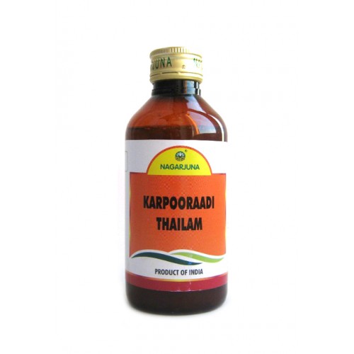Karpooradi Thailam is an Ayurvedic herbal oil, prepared in sesame oil or coconut oil base. It is used in muscular pain, rheumatic complaints, muscle cramps etc. This oil is based on Kerala Ayurveda principles. It is also known as Karpuradi tailam. Karpooradi Thailam Benefits: It is used for wide variety of complaints. It is used to relieve muscular pain, rheumatoid complaints, joint pain, joint stiffness. It relieves muscle pain and stiffness. It is applied to chest to relieve chest congestion. It has got rubefacient effect. Improves blood circulation and brings about warmth. It is used to relieve neck pain, back pain, and multiple joint pains. Excellent for cramps and numbness and so is essential in cholera. How To Use: It is used for external application only. It is not used for internal administration. It is also used as massage oil. Apply this over the area of pain and do Swedana therapy with flannel dipped in water boiled with caster leaves- Eranda patra or Vatamkolli- Justicia gendarussa. Swedana may be done by other means too. Karpooradi oil ingredients: It is prepared either in coconut oil or Sesame oil base. Other ingredient than coconut oil is – Camphor – Cinnamomum camphora. Reference: Sahasra Yoga – Taila Yoga Prakarana Further reference: Different uses Companies that manufacture Karpooradi oil – AVN Ayurveda Formulations Pvt. Ltd. AVP Nagarjuna Vaidyaratnam Oushadhalaya How to use Karpooradi oil for migraine – 10 drops of the oil is taken into the finger tips and rubbed gently over the forehead for 2 minutes. This helps to relieve pain associated with migraine. However, this is a temporary remedy for migraine.