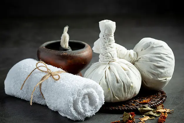 Choornapindaswedais a treatment using a fist-size Kizhi, or poultice, made with Podi, or medicated powder.